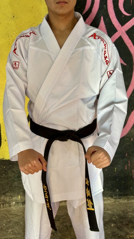 بدلة القتال الدوليه من ماركة اروازا العالميه تاتي هذه البدله بنسخة الوانكس الدوليه معترف بها في البطولات والدوريات العالميه للكاراتيه مميزاتها:تحتوي البدله على عراقات تسحب العرق وتحافظ على مظهر البدله في النزال -تكون البدله ضد الكوي مع سهوله في الغسل -تتوفر باللونين الاحمر والازرق