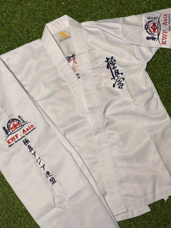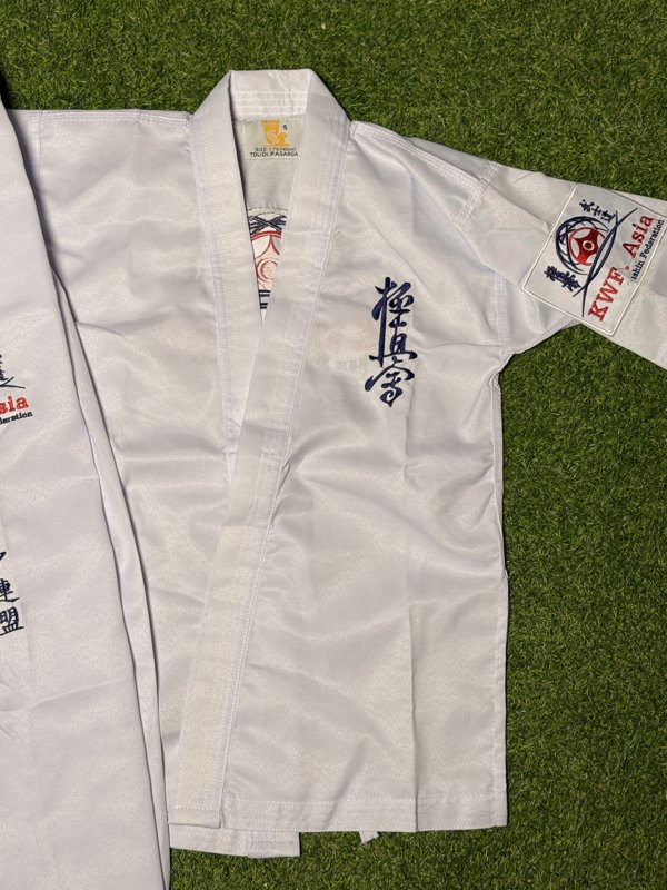 بدلة كيوكشن مخصصة للمبتدئين ، مصنوعة من قماش مريح يناسب التدريبات اليومية ويوفر حرية حركة ممتازة. تصميم عملي مع تطريز رسمي للاتحاد الاسيوي على الظهر يعكس هوية الكيوكشن. 📦 محتويات المنتج: • بدلة كاملة (سترة + بنطال) • حزام أبيض • مختمة (شعار