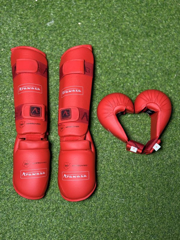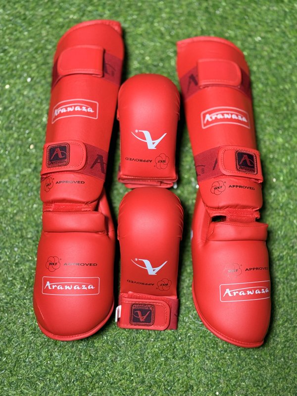 واقيات القدم +اليد. الاصليه من ماركة اروازا العالميه تكون هذه الواقيات من لزكتين اي متينه جدا وتستمر لفتره طويله من الزمن ولا تفلت في النزال بسبب انها تتكون من لزكتين في الكفوف والقدم